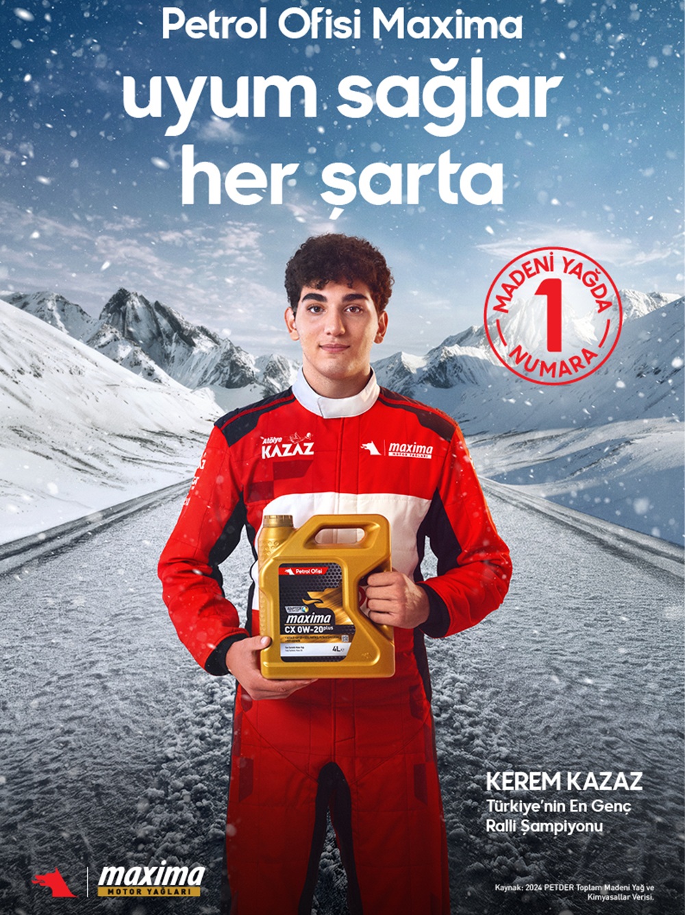 Türkiye’nin en genç ralli şampiyonu Kerem Kazaz’ın rol aldığı reklam filminin çekimleri için termometrelerin sıfırın altında 39,7°C’yi göstererek rekor kırdığı, Türkiye’nin en soğuk yolu olan Ardahan’ın Göle ilçesi seçildi. Kazaz, Adaptech teknolojili Maxima motor yağı kullanılan bir otomobille, karlı ve sert kış şartlarında sınırları zorlayan bir sürüş gerçekleştiriyor. “Petrol Ofisi Maxima Uyum Sağlar Her Şarta” mesajının verildiği bu heyecan verici sürüş, Maxima’nın soğuk havalarda da ilk çalıştırmadan ani hızlanma ve yavaşlamalara kadar her anda motoru güvenle koruduğunu gözler önüne seriyor.
